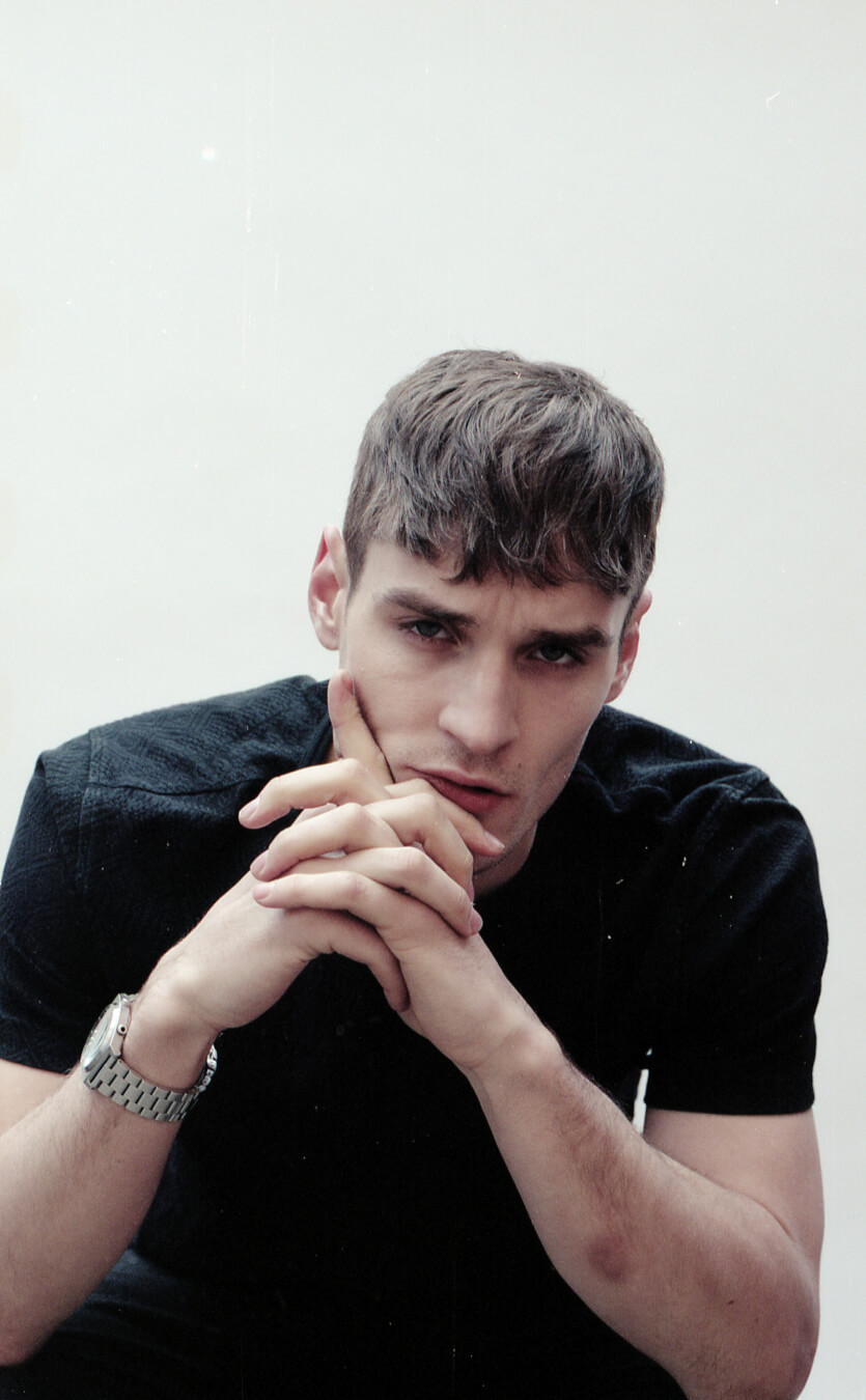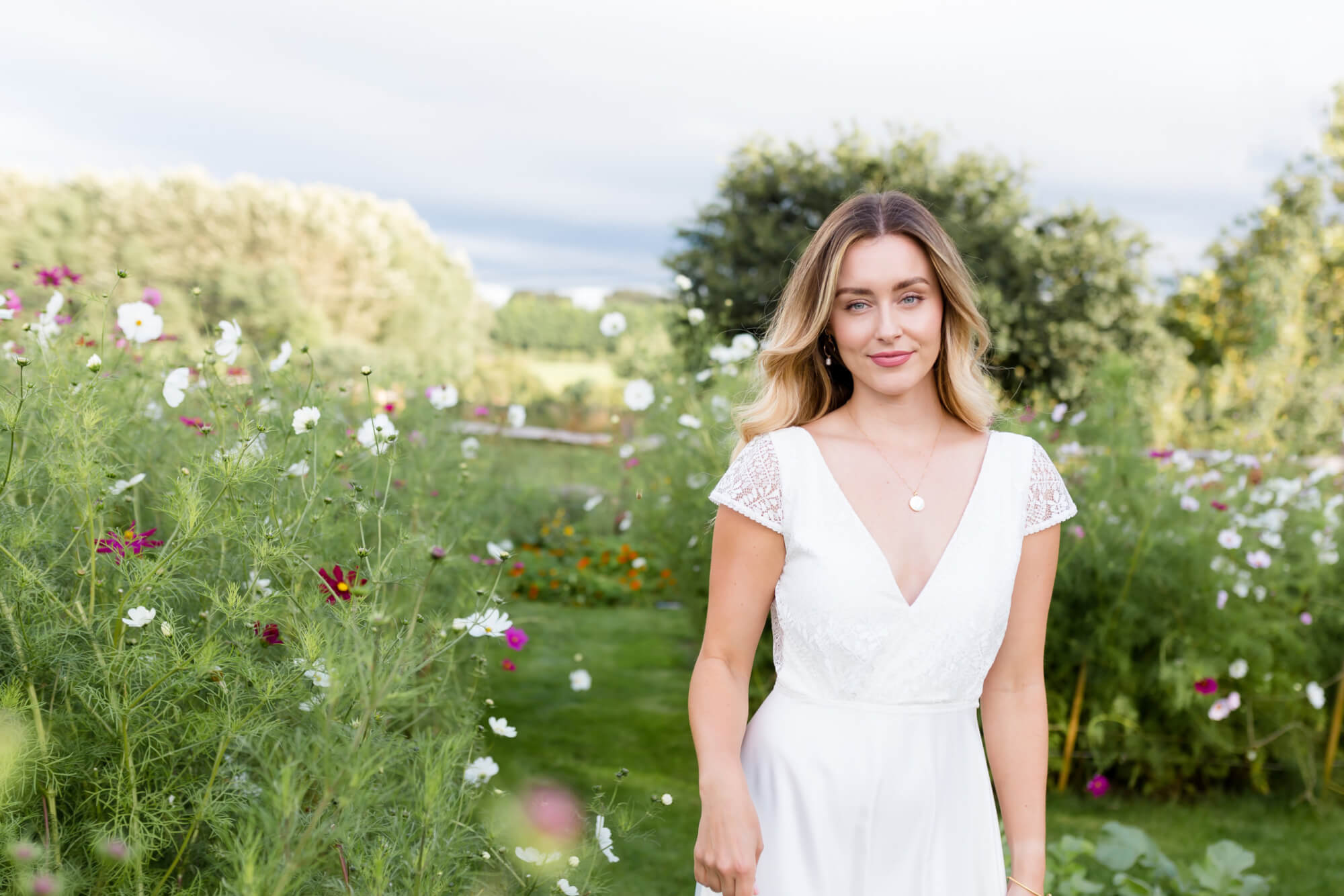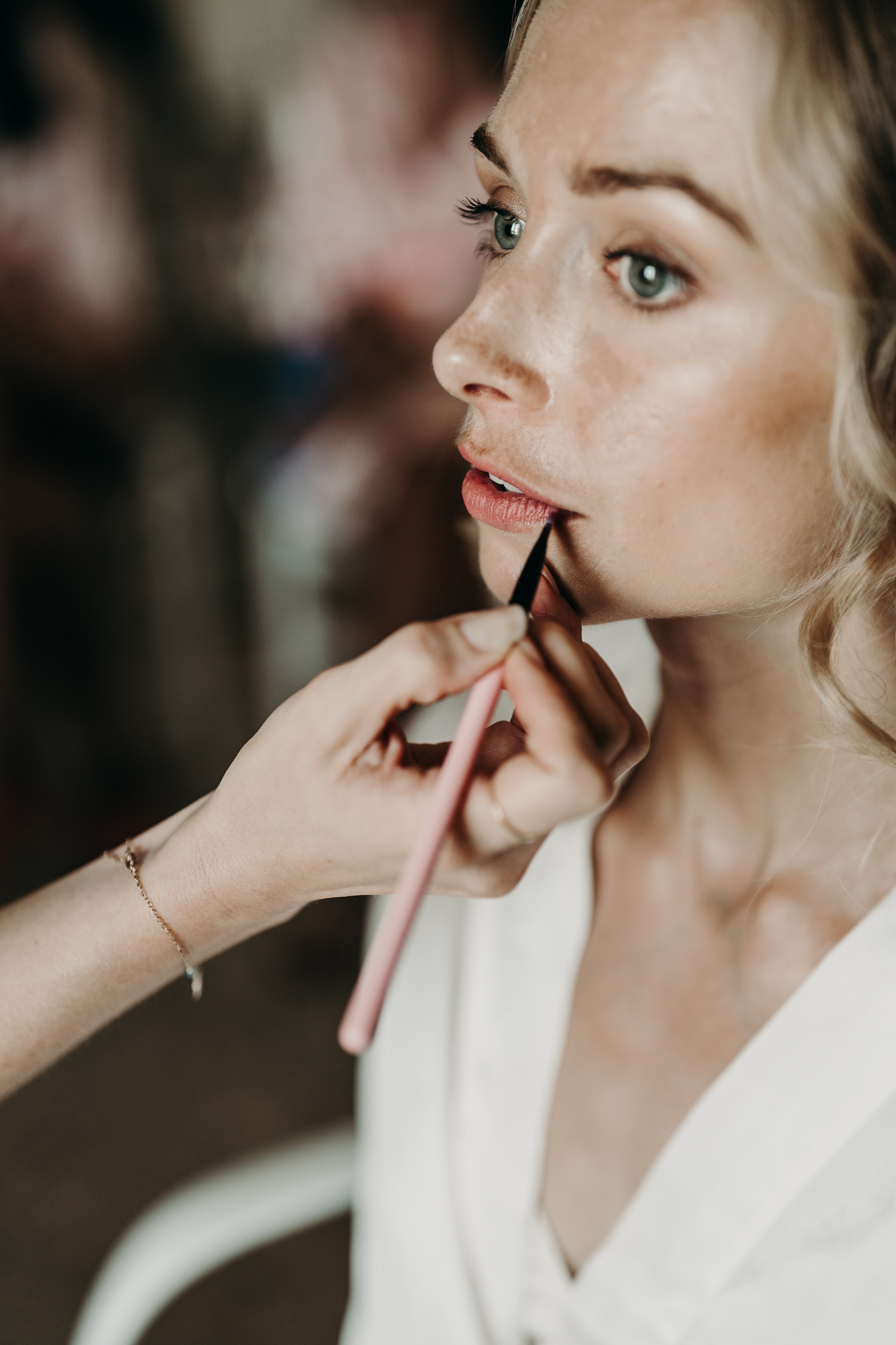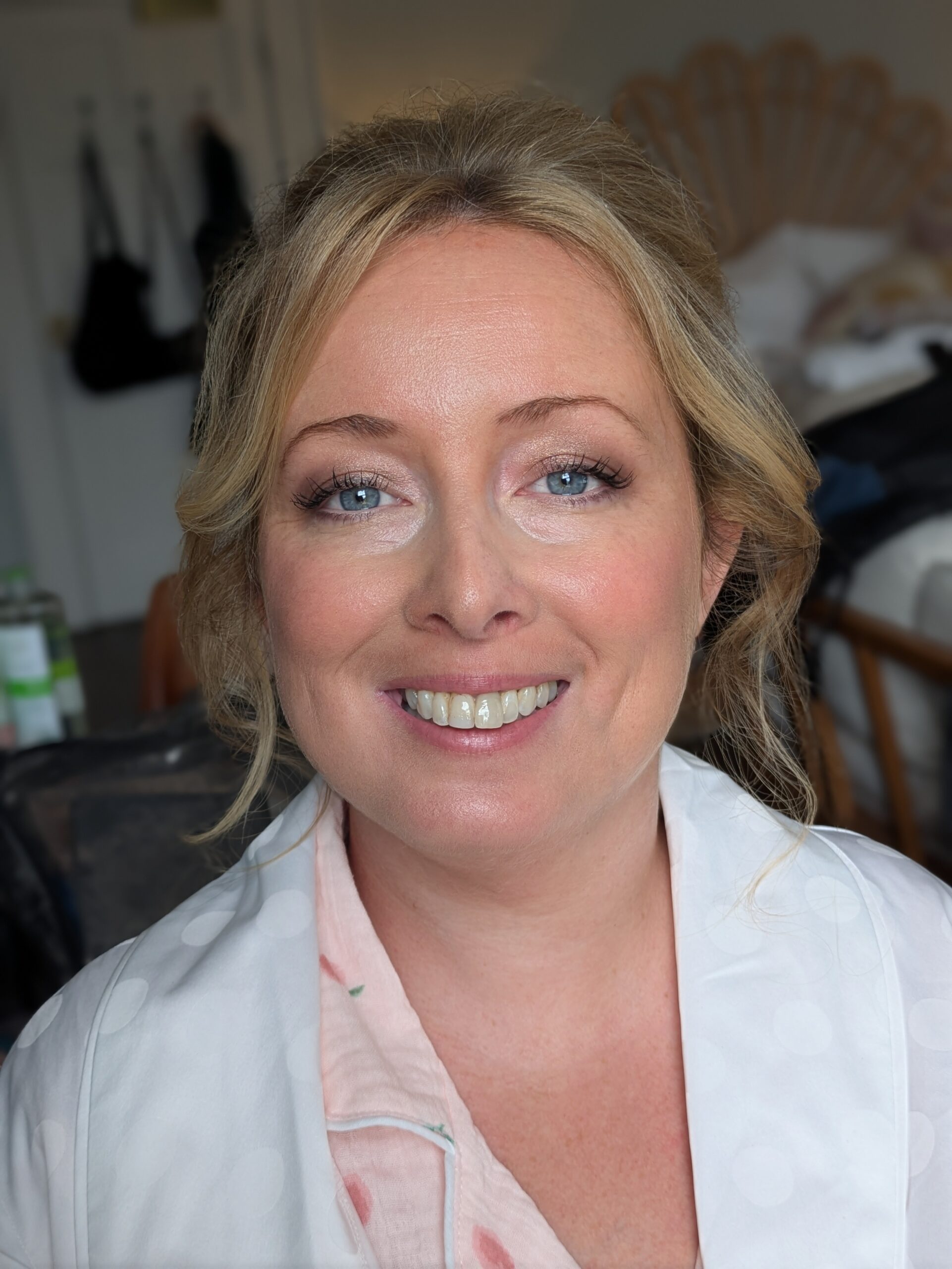 Evie, a makeup artist, wearing a white jumper,looking down as she writes in a notepad